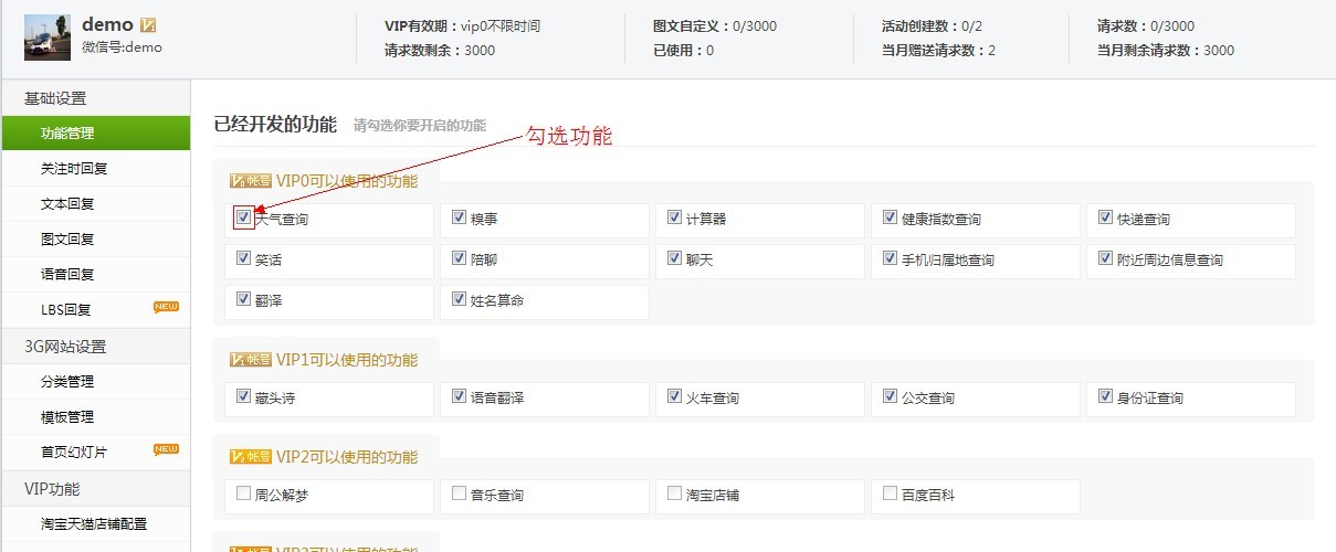 5、在手机上用微信给你的公众号输入"帮助",测试你的接口是否配置正常!