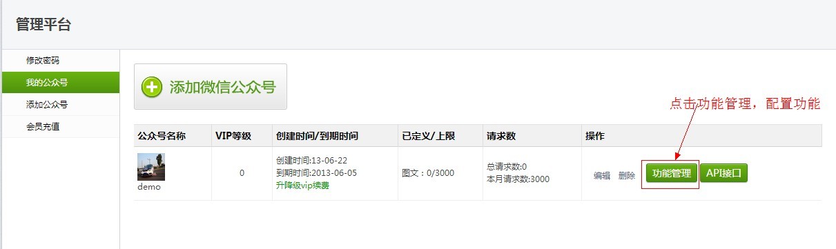 第二步、到微信公众平台设置接口。